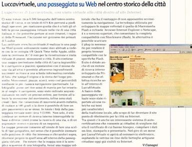 LuccaVirtuale (WWW.luccavirtuale.it) realizza in una pagina html quanto solitamente siamo stati abituati a vedere con la tecnologia VR Quick Time della Apple, utilizzata in centinaia di Cd-rom per la ricostruzione e visita virtuale di piazze, monumenti e città.